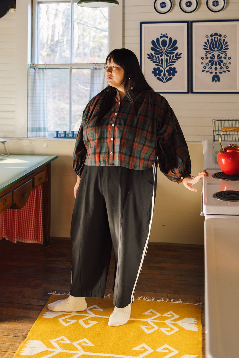 This top features beautiful pintucking along the sleeves and bottom with shirred balloon sleeves and pretty cream pearl button closures. Made from natural materials with a slightly longer back hem – tuck it in or wear it loose. The voluminous sleeves add that perfect touch of something special. Designed to complement our Porch Pants and easy to dress up or down
