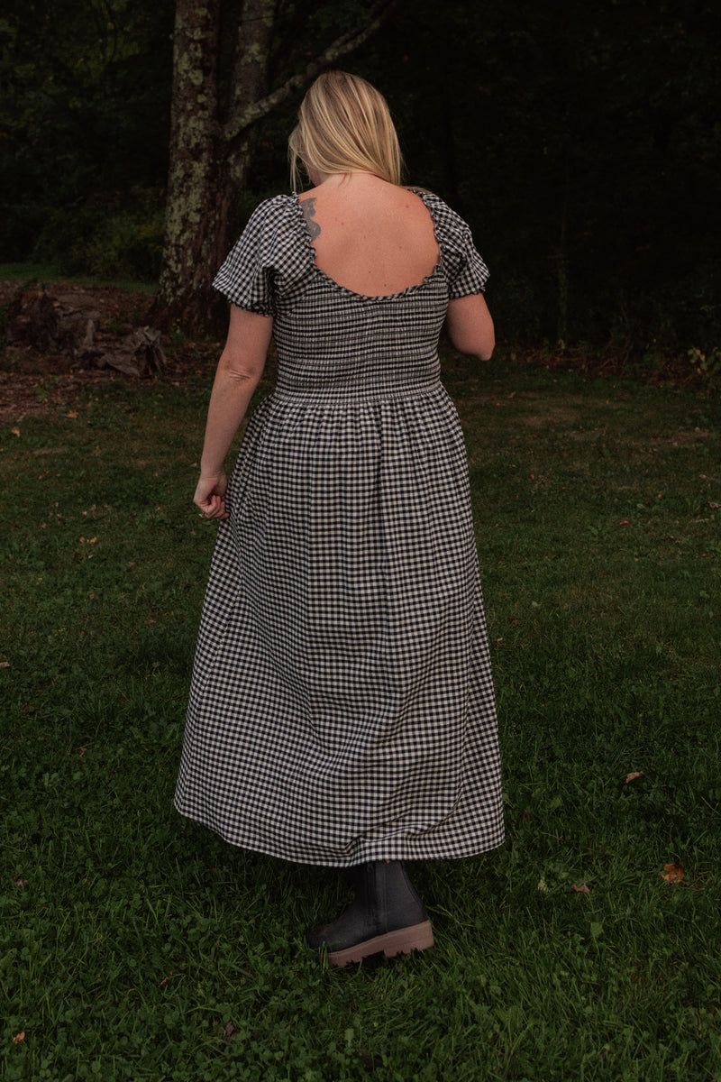 Goldie Smocked Short Sleeve Dress Black Oat Milk Gingham