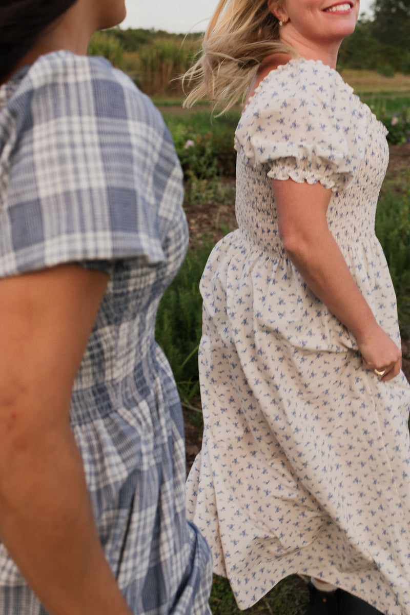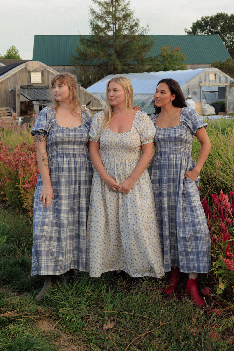 The Goldie Dress is years in the making and named after my daughter. I designed it during those months after she was born when I wanted something that worked with my changing body but still made me feel beautiful. The elasticated smocking moves and adjusts with you, while the scooped neckline stays bra-friendly. We spent so much time getting the smocking and fit perfect across XS to 4X. Flexible puff sleeves and midi length that is comfortable and easy.