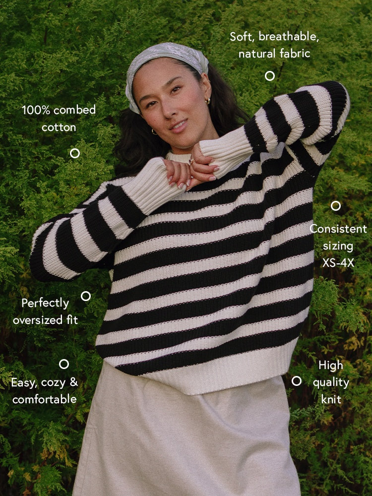 Shelter Crewneck Sweater Black Oat Milk Stripe